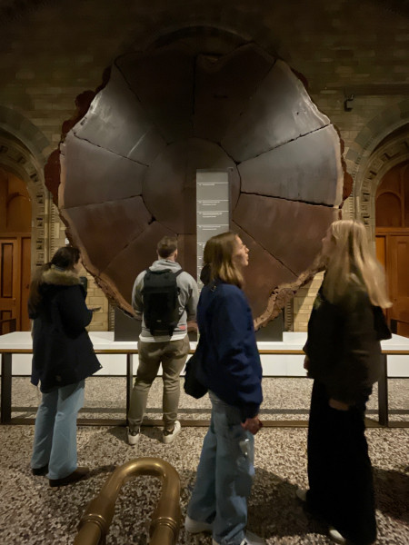 Die 3. Klasse des Merz Berufskollegs ist mit ihren Lehrenden zur Klassenfahrt nach London aufgebrochen. Früh morgens um 6:00 Uhr ging es los. In der britischen Hauptstadt angekommen wurden Eindrücke gesammelt, Museen besucht und es wurde natürlich auch viel gezeichnet. Das Natural History Museum durfte da selbstverständlich nicht fehlen. Trotz winterlicher Temperaturen haben die Schüler*innen mit durchschnittlich 21.000 Schritten pro Tag London kreuz und quer erlaufen.