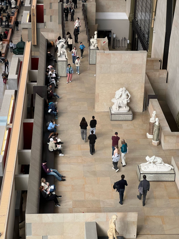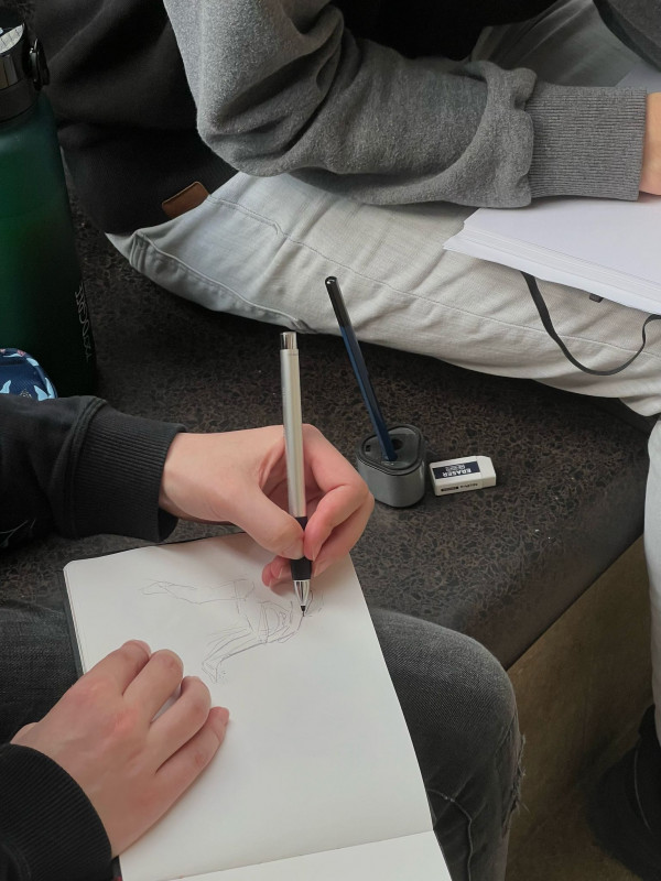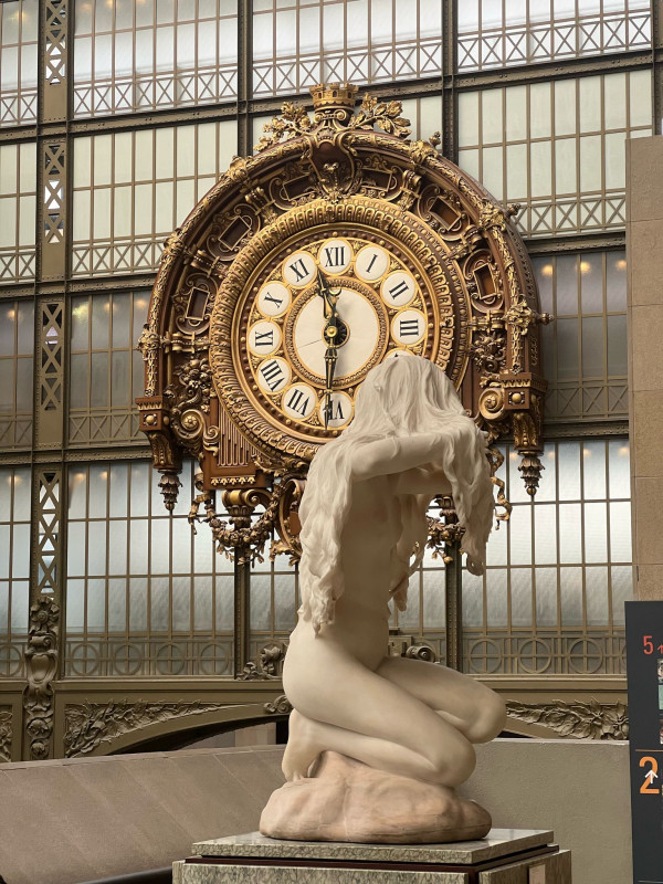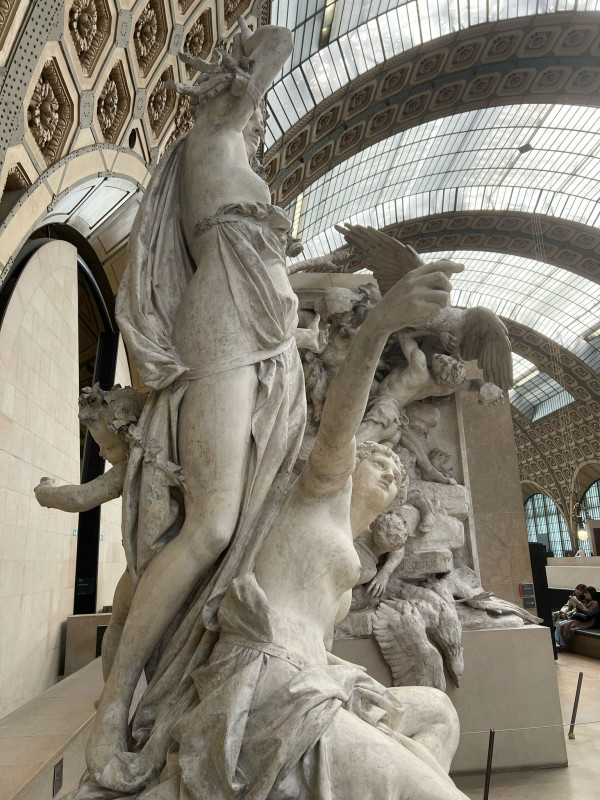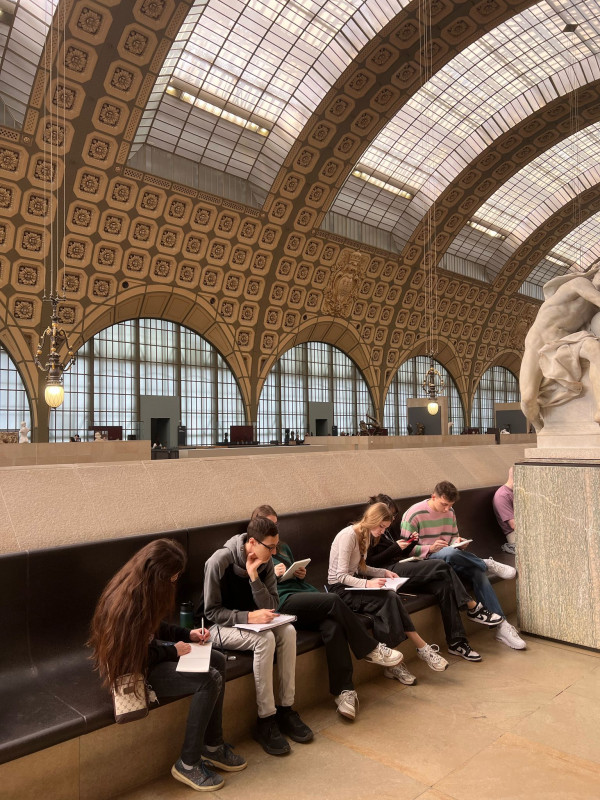 Mit dem Musee d‘Orsay stand am zweiten Tag eine ganz besondere Attraktion auf dem Programm. Vorbei am geschlossenen Centre Pompidou, dem dahinter liegenden Place Igor Stravinski, durchs vierte Arrendissement mit kurzem Blick auf Notre Dame, marschierten alle mit Skizzenbuch und Zeichenmäppchen im Gepäck an der Saine entlang ins Musee d‘Orsay. Freies Zeichnen einmal anders. Jeder suchte sich nach einem Gang durchs Museum eine Skulptur aus, die in frei wählbarer Technik auf verschiedene Arten zu zeichnen war.