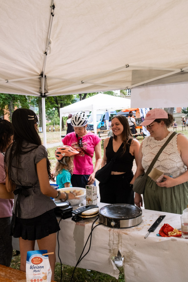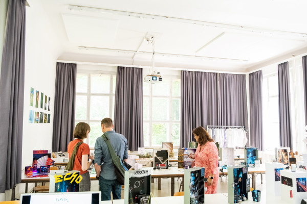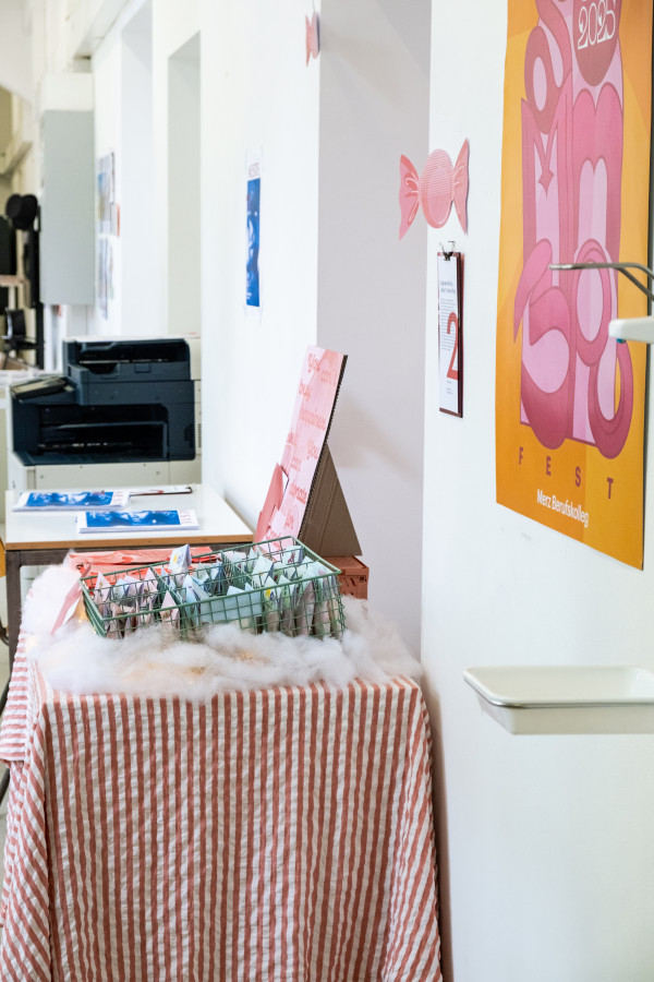 In einer großen Ausstellung in den Klassenzimmern des Schulhauses präsentierten die Schüler*innen des Merz Berufskollegs ihre Arbeiten. Dabei waren auch die Abschluss-Arbeiten der dritten Klasse. Bei bestem Wetter wurde das Ende des Schuljahres gefeiert. Es gab Waffeln, allerlei Fingerfood und Musik. Die erste Klasse sorgte für ein reich bestücktes Buffet.