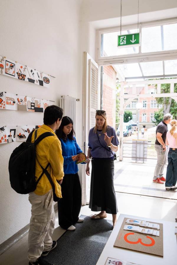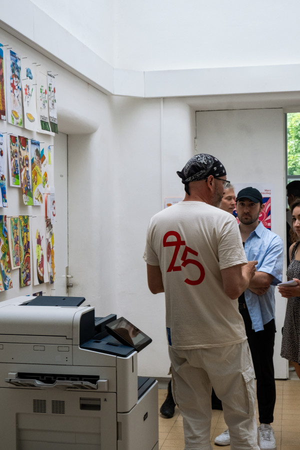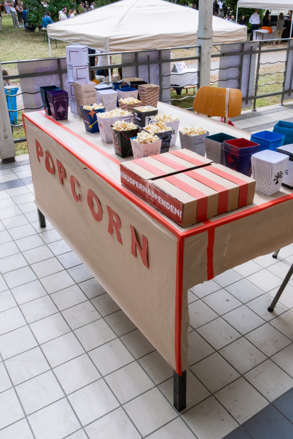 Wie jedes Jahr fand das Sommerfest gemeinsam mit der Merz-Akademie statt, die sich genau gegenüber des Merz-Berufskollegs befindet und deren Student*innen in einer Werksschau ihre Arbeiten präsentierten. Die Absolvent*inne wurden verabschiedet und erhielten ihre Urkunden.