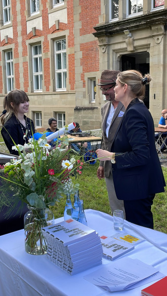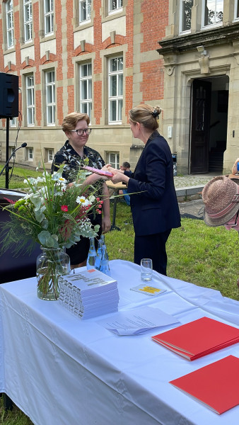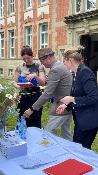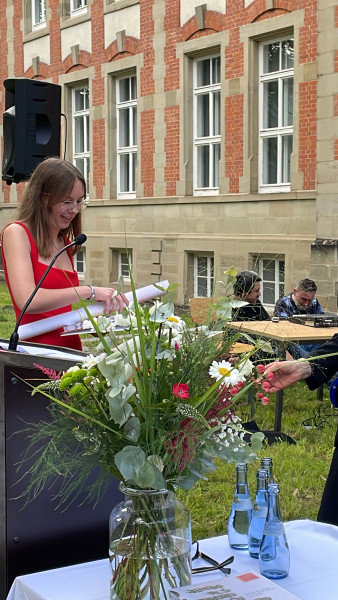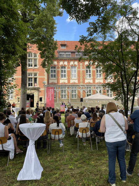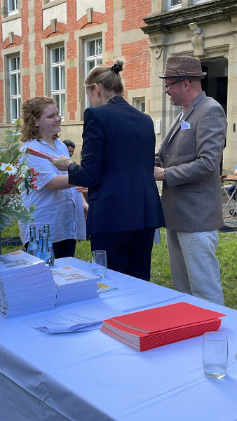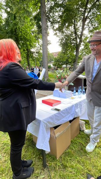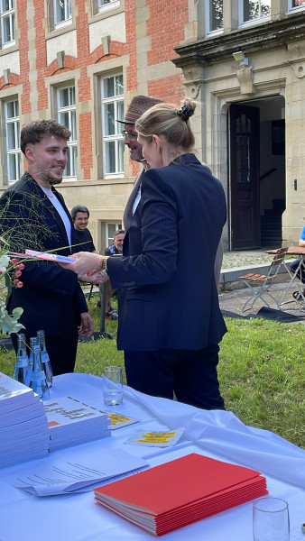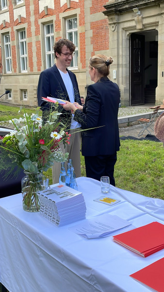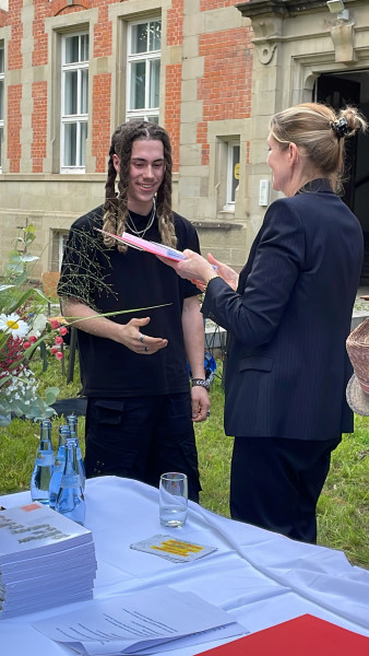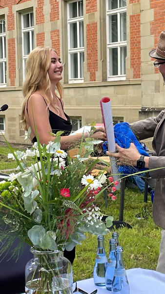Jedem/r Schüler*in wurde im Kreise von Familie und Freunden bei bestem Wetter im Park ihr Zeugnis und ein Geschenk überreicht. Im Anschluß wurde in schönem und festlichem Rahmen angestoßen und gefeiert.